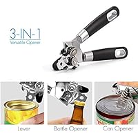 Best Buying Guide: Top 10 Best Manual Can Opener of 2020 Can Opener, Adoric 4-in-1 Manual Can Opener. 4 in 1 can opener can works as jar opener, lever, can opener, and bottle opener. One tool for all kinds of jars and bottles, one of the ideal kitchen gifts. This can opener can open the jar, can, beer and bottle, and pry the lids. It is almost able to open all cans and bottles.