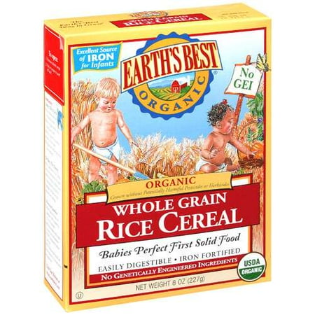 Earth's Best Organic Whole Grain Rice Baby Cereal - Target Earth's Best Organic Brown Rice Infant Cereal is a perfect first food for your little one as they transition to solids. Made from whole grain brown rice, this delicious iron fortified cereal is made with organic ingredients grown without potentially harmful synthetic pesticides Made with organically grown whole grains and no salt or refined sugar, Earth's Best Organic infant cereals are ...
